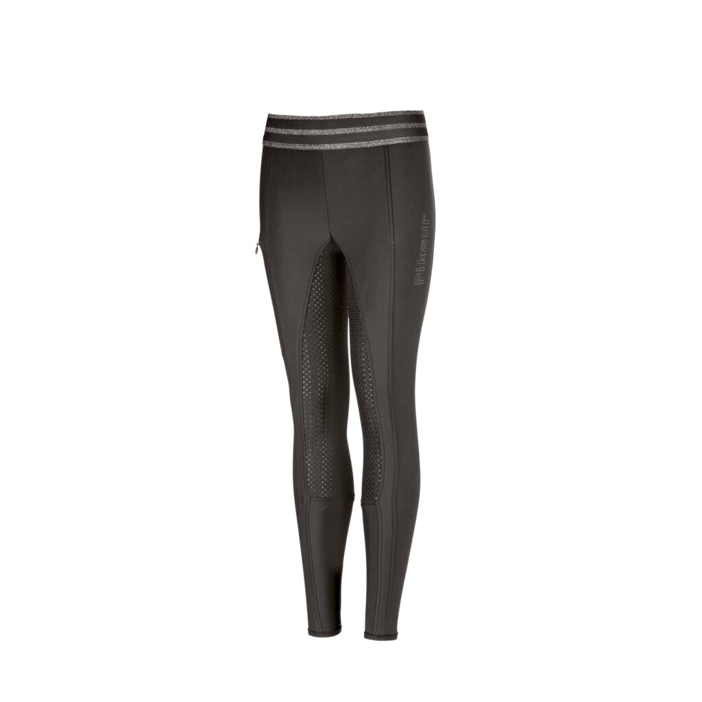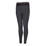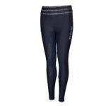 Hoge elastische band en telefoonzakje op het bovenbeen.
