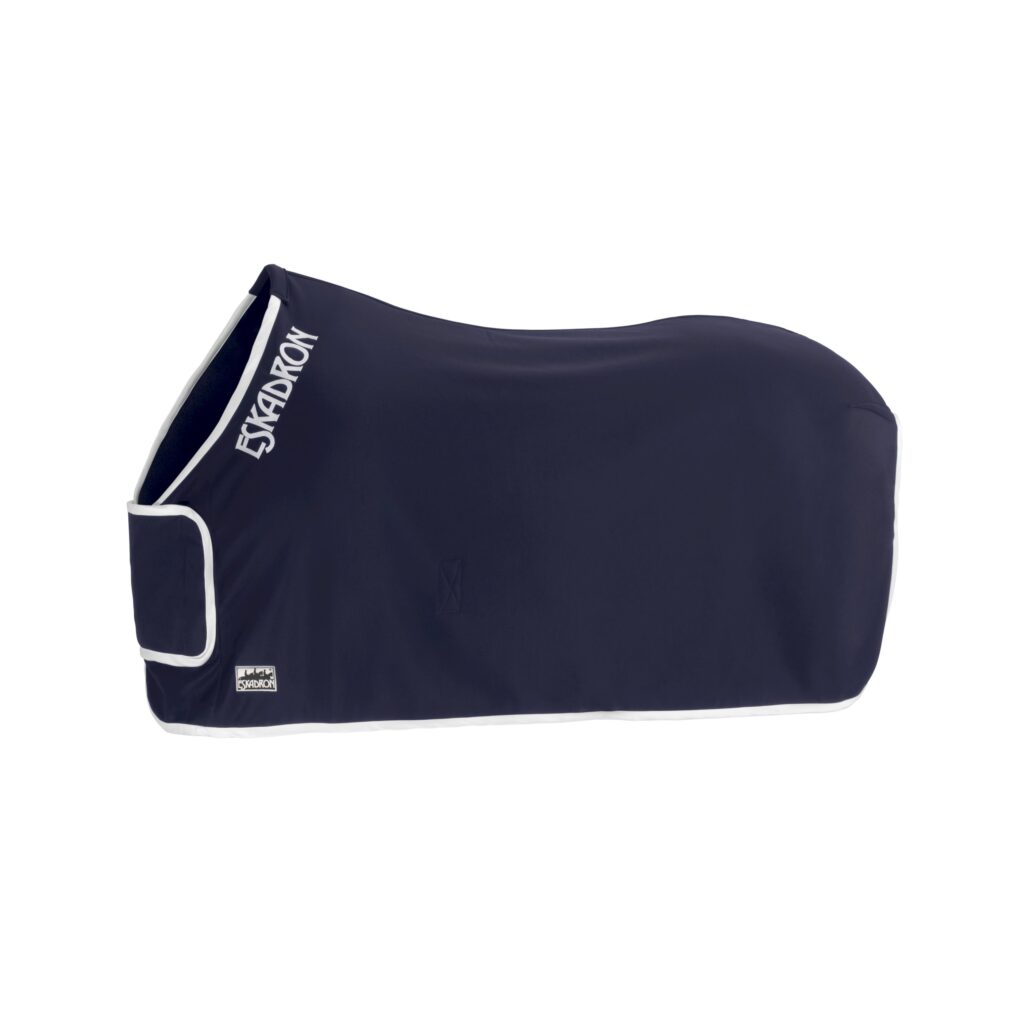 Hoge kwaliteit Jersey zweetdeken met borstoverslag, dubbele borstsluiting en verborgen buiksingels. Het deken is gemaakt van ademend en vochtabsorberend materiaal. Het deken is afgewerkt met een glossy binding in een contrasterende kleur.