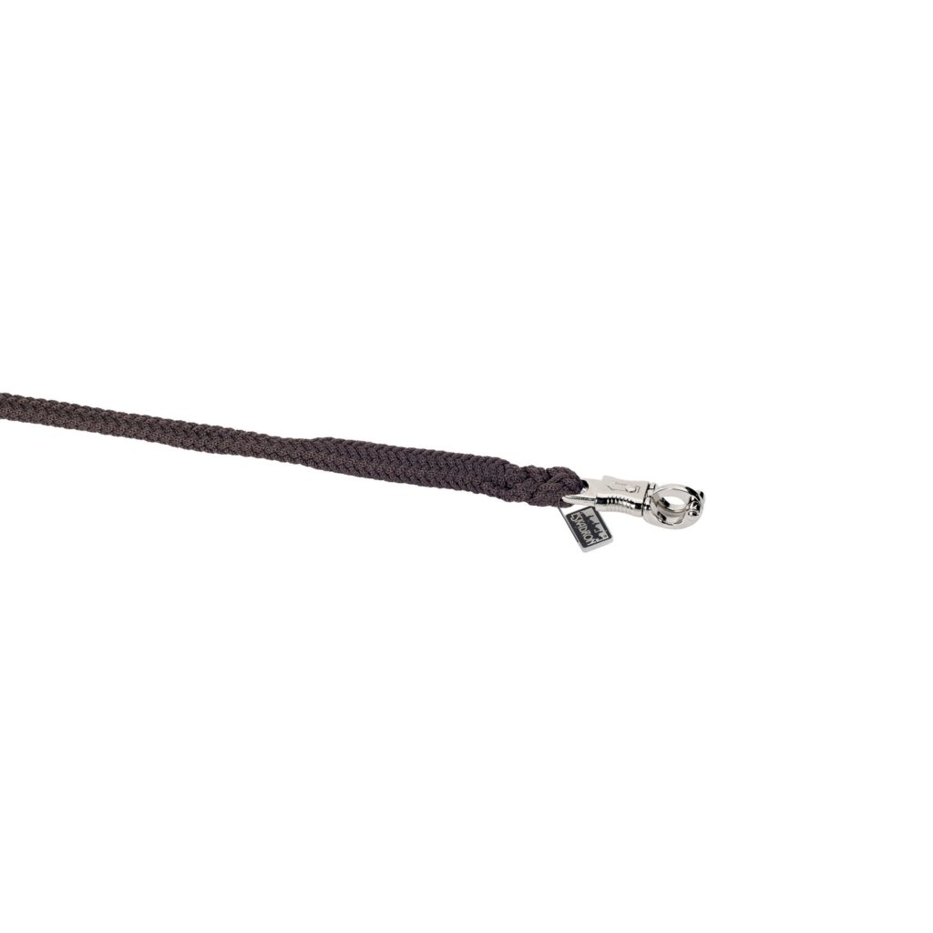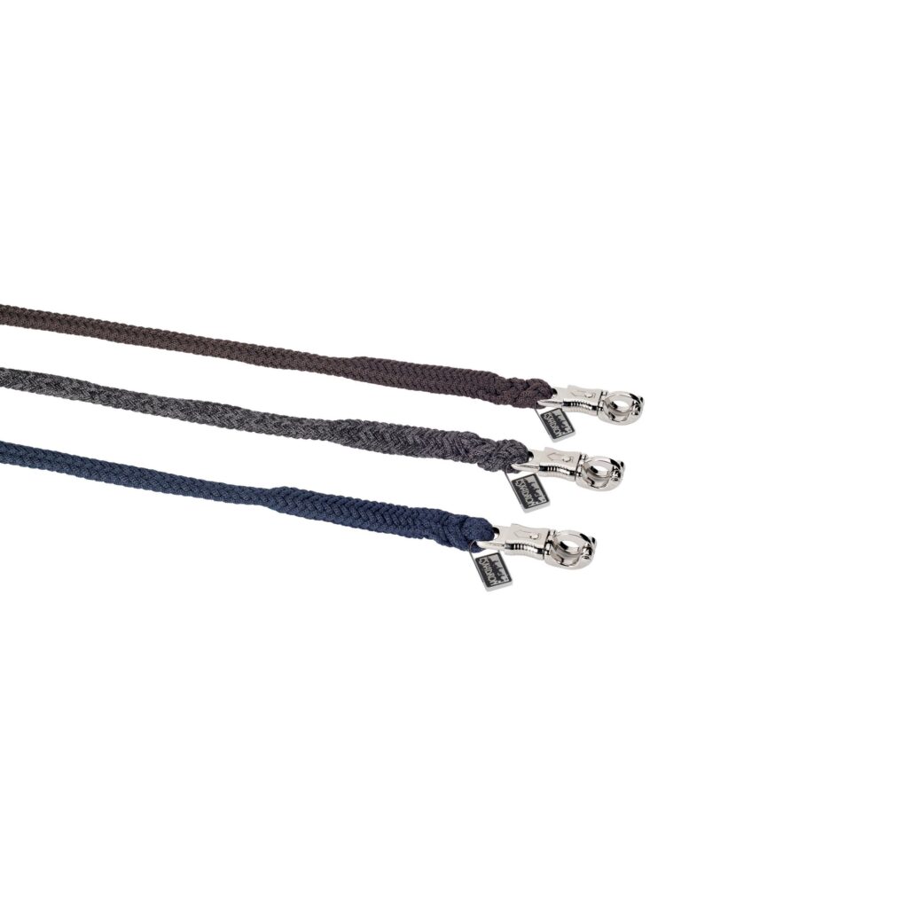 Dik halstertouw voor een goede grip. Licht elastisch materiaal wat hierdoor iets mee kan rekken. Met zilverkleurige paniekhaak.
