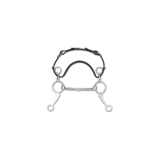 Combinatie bit, waarbij de druk verdeelt wordt over de neus, achter de oren en de mond, met een rvs comfort (02) mondstuk in 12 mm dikte.