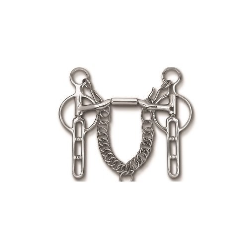 Liverpool bit, met drie plaatsen om de teugel te bevestigen, met een recht naar voren gericht (06) mondstuk in 12 mm dikte.