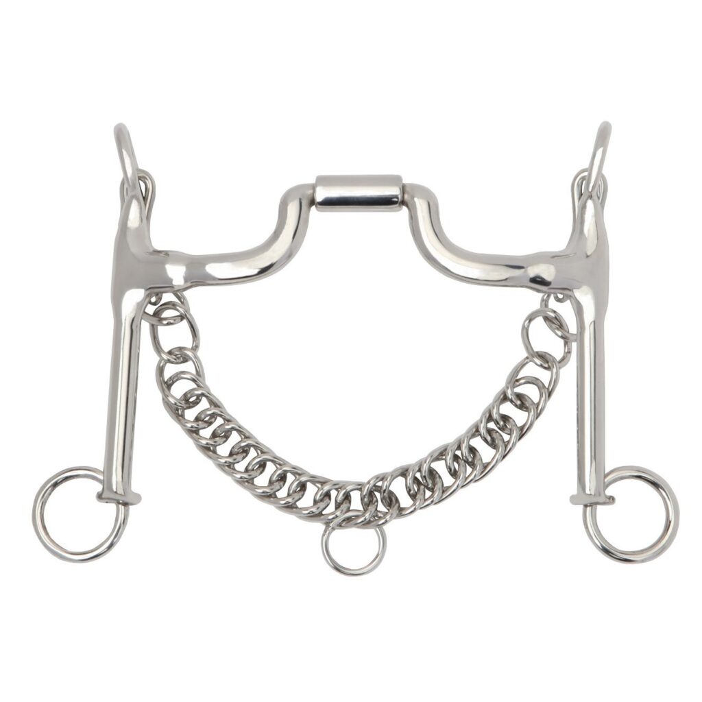 Dressuurstang van rvs, met een smalle hoge tongpoort als mondstuk.
